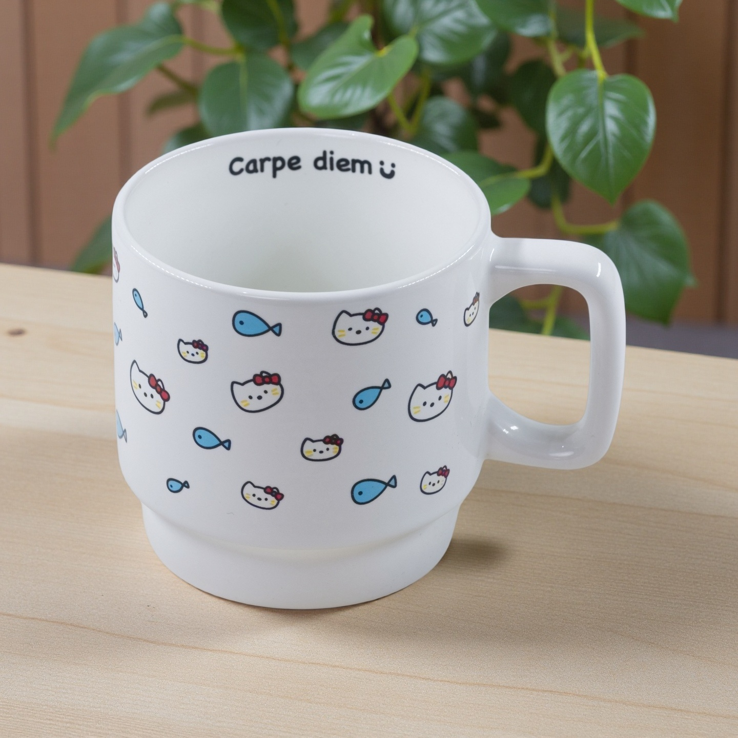 猫咪吃鱼手提马克杯