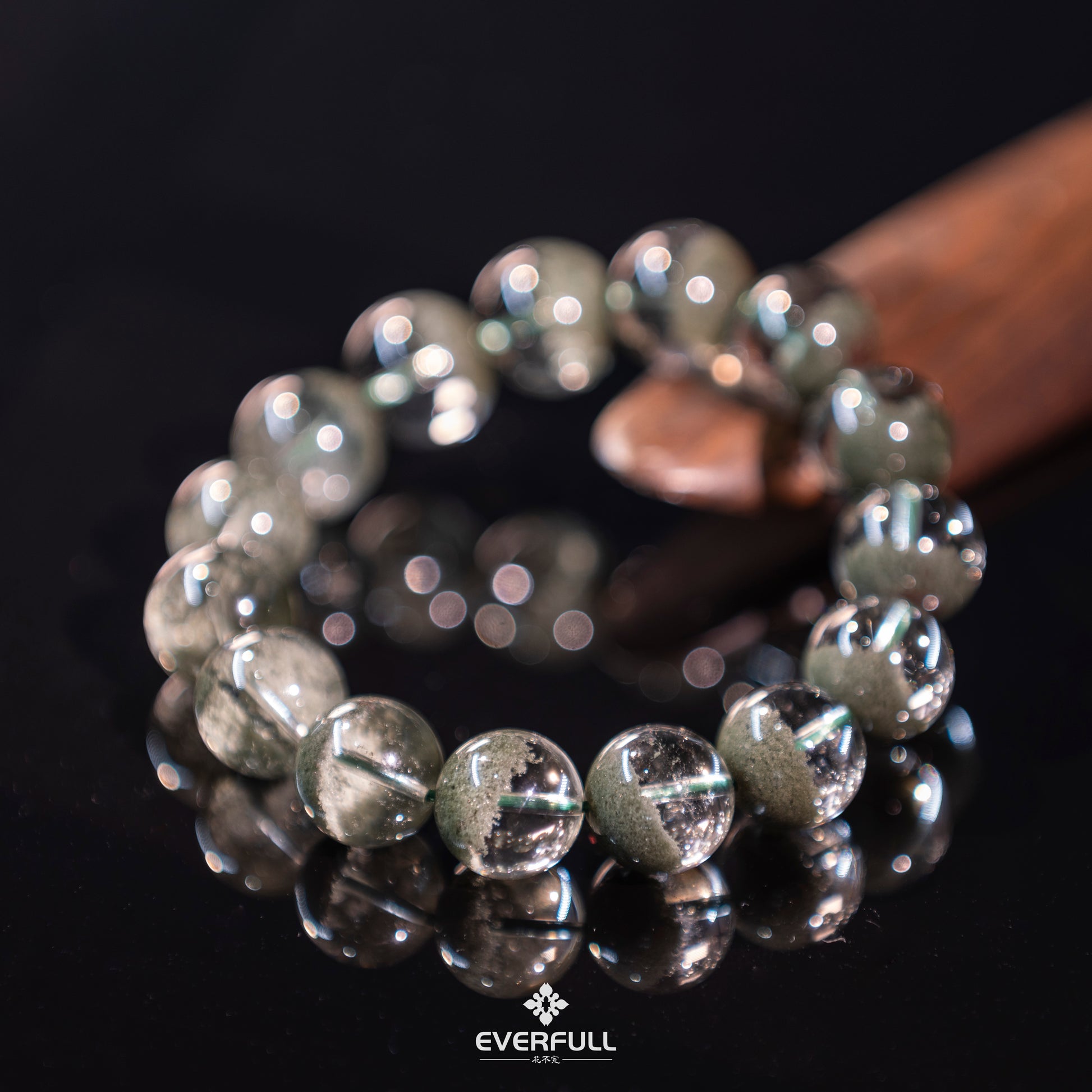 花不完精品水晶 天然绿幽灵手链吊坠 鬼佬财神 绿色满天星天然水晶手串送礼